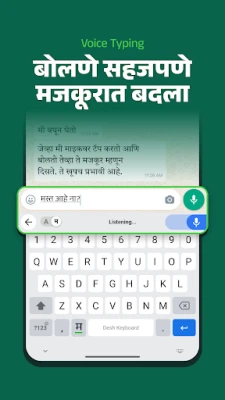 தேஷ் மராத்தி விசைப்பலகை, மராத்தி மற்றும் ஆங்கிலம் ஆகிய இரு மொழிகளிலும் தடையின்றி தட்டச்சு செய்ய பயனர்களுக்கு உதவுகிறது. அதன் உள்ளுணர்வு வடிவமைப்பு மற்றும் எளிமை காரணமாக இது பரவலாகப் பயன்படுத்தப்படுகிறது. மென்மையான இருமொழித் தகவல்களுக்கான நிகரற்ற அனுபவத்தை வழங்குகிறது.