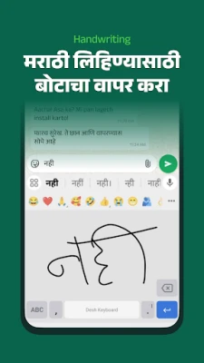 மாரத்தி மொழியில் தட்டச்சு செய்வது இனிமேல் சிரமமான காரியமல்ல! "தேஷ் மராத்தி கீபோர்டு" உங்கள் தினசரி உரையாடல்களை எளிதாக்குகிறது. நீங்கள் ஆங்கிலத்தில் தட்டச்சிட, உடனே மராத்தி வார்த்தைகளாக மாறும் அதிசய அனுபவத்தைப் பெறுங்கள். குரல் மூலம் பேசினால் மராத்தி வரிகள் தோன்றும், அல்லது உங்கள் கைகளால் எழுத்துக்களை வரைந்து அழகாக தட்டச்சிடலாம். ஒவ்வொரு மராத்தி எழுத்தையும் தேர்ந்தெடுத்து தட்டச்சிடும் விருப்பமும் உள்ளது. மராத்தி மொழி தேவையில்லாதபோது, எளிதாக ஆங்கிலத்திற்கு மாறி தடையின்றி உரையாடலாம். இந்த பல்துறை விசைப்பலகை உங்கள் மொழித் தேவைகள் அனைத்தையும் பூர்த்தி செய்து, நேரத்தைச் சேமித்து, துல்லியமான தட்டச்சு அனுபவத்தை வழங்குகிறது.