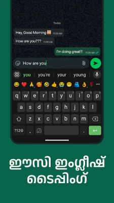 சகஜமான மலையாளத் தட்டச்சு அனுபவத்தை நீங்கள் தேடுகிறீர்களா? "Manglish Keyboard" உங்கள் மொழித் தொடர்புக்கு புதிய அத்தியாயத்தைத் திறக்கிறது. விரைவான ஃபோனெடிக் ஒலிபெயர்ப்பு (namaskaram > നമസ്കാരം), துல்லியமான மலையாள குரல் மூலம் உரை (வாய்ஸ் டூ டெக்ஸ்ட்), மற்றும் கையெழுத்து தட்டச்சு போன்ற புரட்சிகரமான அம்சங்களுடன், எந்த தாமதமும் இன்றி உங்கள் எண்ணங்களை வெளிப்படுத்தலாம். வாட்ஸ்அப், பேஸ்புக், இன்ஸ்டாகிராம் என எந்த ஒரு செயலியிலும் உங்கள் தாய்மொழியில் தடையின்றி உரையாட இது உதவுகிறது. இனி நகல் எடுத்து ஒட்டும் சிரமம் இல்லை; "Manglish Keyboard" உங்கள் ஒவ்வொரு செயலியிலும் ஒருங்கிணைந்து செயல்படுகிறது.