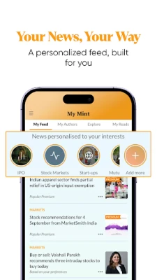 சிறந்த நிபுணர்களின் வழிகாட்டுதலுடன் ஒரு வலுவான போர்ட்ஃபோலியோவை உருவாக்குங்கள். "Mint" சந்தை வல்லுநர்களால் பரிந்துரைக்கப்படும் பங்கு யோசனைகள், பன்மடங்கு வருவாய்க்கான முதலீடுகளைக் கண்டறிய உதவும். அடிப்படை மற்றும் தொழில்நுட்ப பகுப்பாய்வுடன் தினசரி, வாராந்திர, நீண்டகால பங்குப் பரிந்துரைகளைப் பெறுங்கள். சுறுசுறுப்பான ஐபிஓ சந்தையை எங்கள் பிரத்யேக ஐபிஓ டாஷ்போர்டு மூலம் அறிந்துகொள்ளலாம். ஐபிஓ காலண்டரில் வரவிருக்கும், நடந்துகொண்டிருக்கும், கடந்த கால ஐபிஓ விவரங்களை கண்காணிக்கலாம். ஐபிஓ பட்டியல் லாபங்கள், நீண்டகால வாய்ப்புகள் குறித்த நிபுணர் பகுப்பாய்வைப் பெறுங்கள். உங்களுக்கான தனிப்பயனாக்கப்பட்ட அனுபவமாக, உங்கள் விருப்பங்களின் அடிப்படையில் செய்திகளை வழங்கும் 'My Feed' அம்சத்தைப் பயன்படுத்தலாம். சந்தை தொடங்கும் முன், எடிட்டர்களால் தேர்ந்தெடுக்கப்பட்ட "Select 8" உடன் உங்கள் நாளைத் தொடங்குங்கள்.