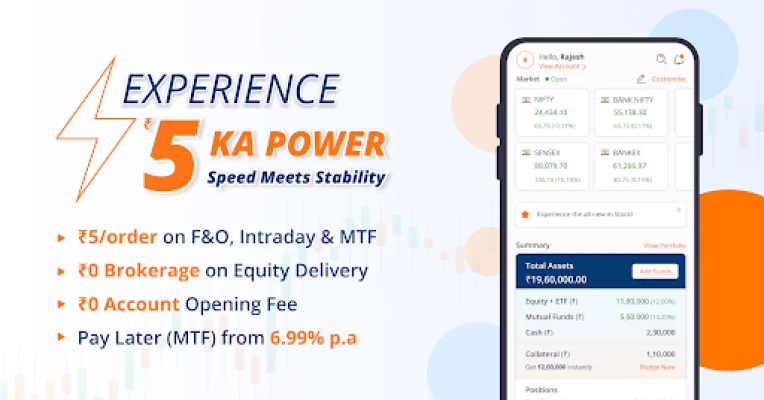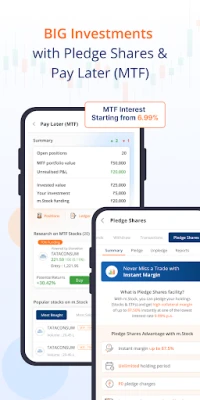 m.Stock செயலியுடன் உங்கள் பங்குச் சந்தை முதலீட்டுப் பயணத்தைத் தொடங்குங்கள். டிமேட் கணக்கைத் திறந்து, பங்குகள், மியூச்சுவல் ஃபண்டுகள், ஐபிஓக்கள் மற்றும் எக்ஸ்சேஞ்ச் டிரேடட் ஃபண்டுகளில் (ETFs) முதலீடு செய்யுங்கள். டிரேடிங்வியூ வரைபடங்களில் நேரடியாக வர்த்தகம் செய்ய, வாட்ச்லிஸ்ட் புரோ, செயற்கை நுண்ணறிவு அடிப்படையிலான செய்தி எச்சரிக்கைகள் மற்றும் உடனடி அறிவிப்புகள் போன்ற மேம்பட்ட கருவிகள் கைகொடுக்கும். m.Stock மூலம் நூறு கோடிக்கும் அதிகமான வர்த்தகங்கள் வெற்றிகரமாக நிறைவேற்றப்பட்டுள்ளன. ஈக்விட்டி டெலிவரி, மியூச்சுவல் ஃபண்ட் மற்றும் ஐபிஓ முதலீடுகளுக்கு பூஜ்ஜிய தரகு கட்டணத்துடன், இன்ட்ராடே வர்த்தகம், F&O மற்றும் MTF-க்கு ஒரு ஆர்டருக்கு வெறும் ₹5 மட்டுமே தரகு கட்டணமாகும், இது உங்களின் ஒவ்வொரு முதலீட்டையும் லாபகரமாக்குகிறது.